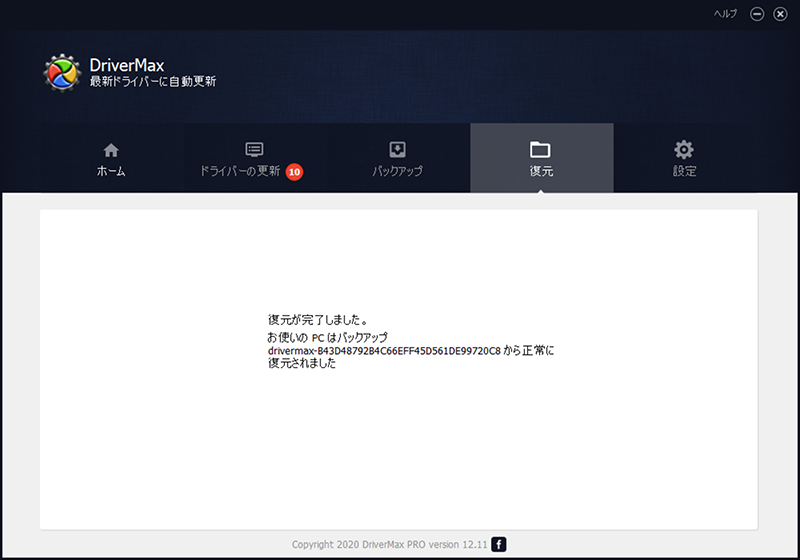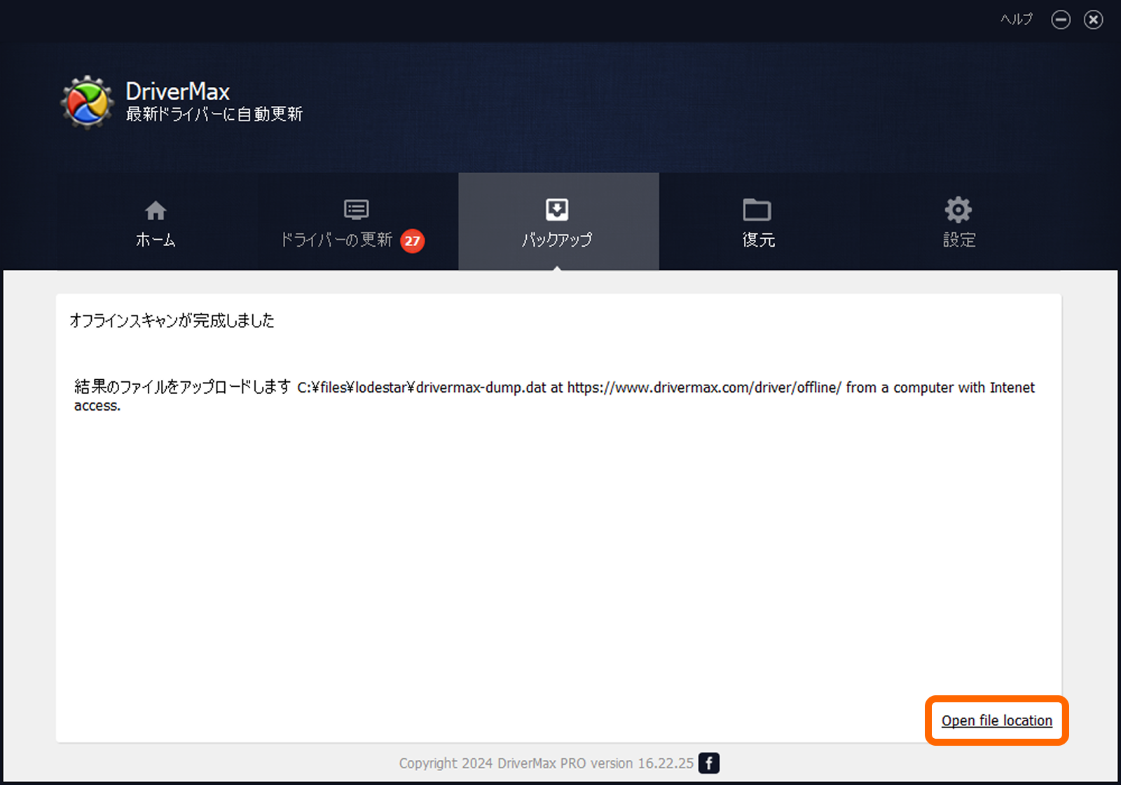 drivermax-dump.dat というファイルが、指定した保存先に作成されます。